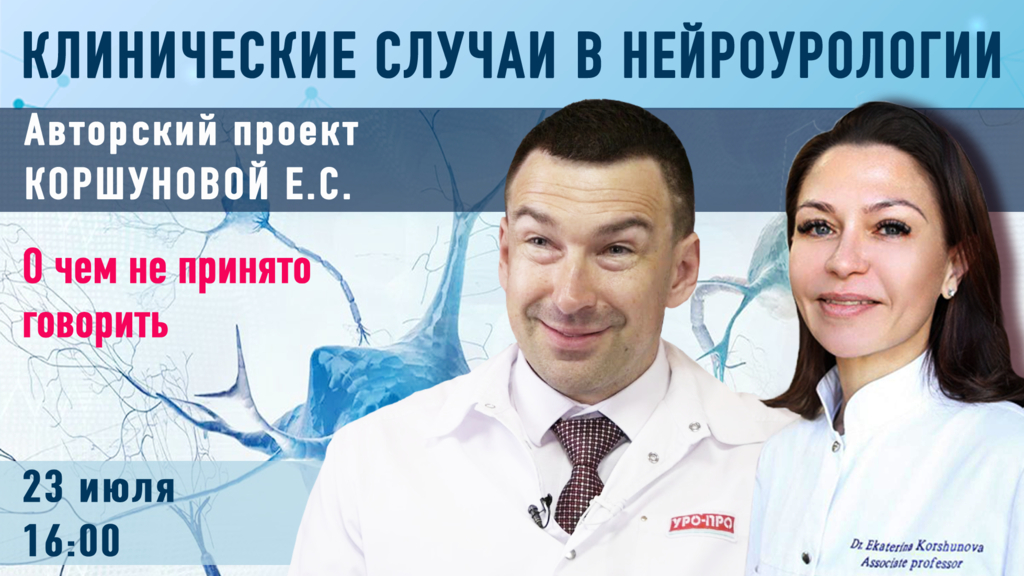Приглашаем присоединиться к трансляции вебинара Клинические случаи в нейроурологии на тему «О чем не принято говорить», который состоится 23 июля в 16.00 по московскому времени.