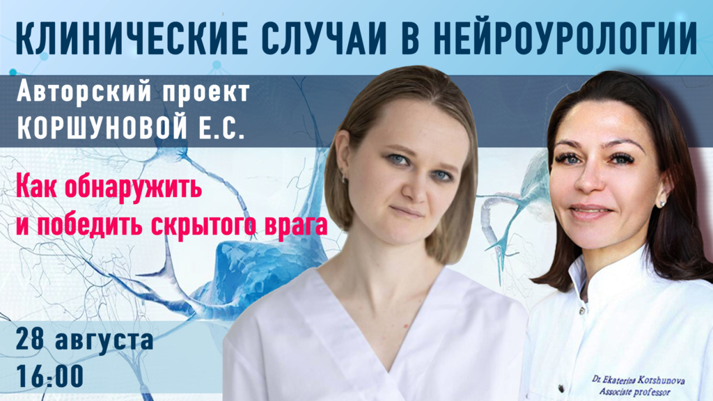 Приглашаем присоединиться к трансляции вебинара Клинические случаи в нейроурологии на тему «Как обнаружить и победить скрытого врага», который состоится 28 августа в 16.00 по московскому времени.