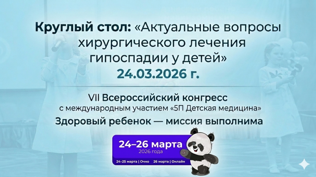 Приглашаем вас принять участие в Круглом столе «Актуальные вопросы хирургического лечения гипоспадии у детей», который состоится 24 марта 2026 года. Мероприятие пройдет в рамках VII Всероссийского конгресса с международным участием «5П Детская медицина».