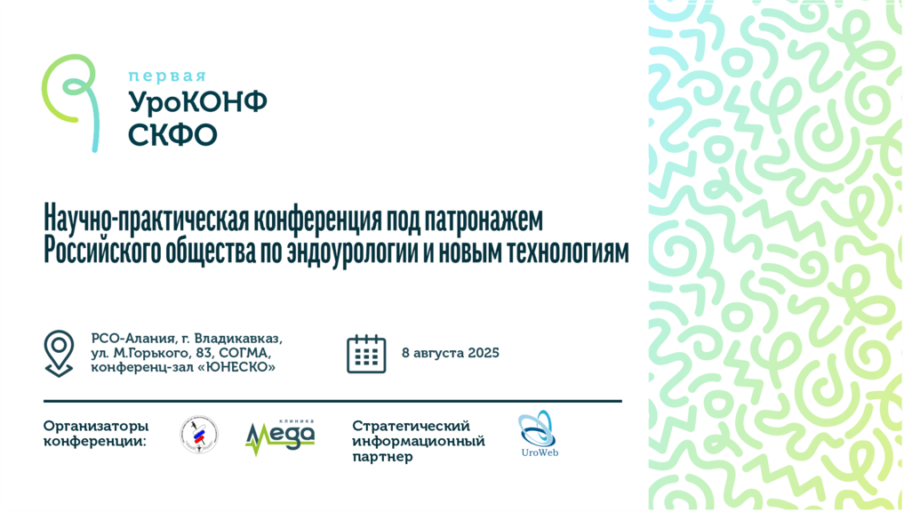 Приглашаем вас принять участие в Научно-практической конференции под патронажем Российского общества по эндоурологии и новым технологиям. Мероприятие пройдет 08 августа 2025 года на базе Клиники МЕГА.