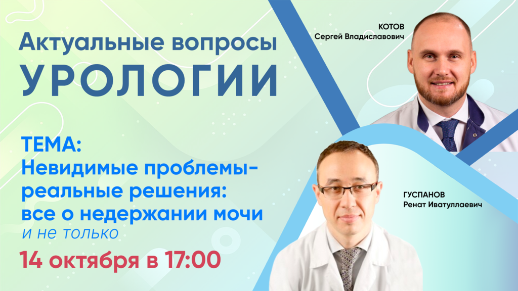 14 октября в 17:00 состоится онлайн-дискуссия Гуспанова Рената Иватуллаевича и Котова Сергея Владиславовича на тему «Невидимые проблемы - реальные решения: все о недержании мочи и не только». Приглашаем присоединиться к трансляции!
