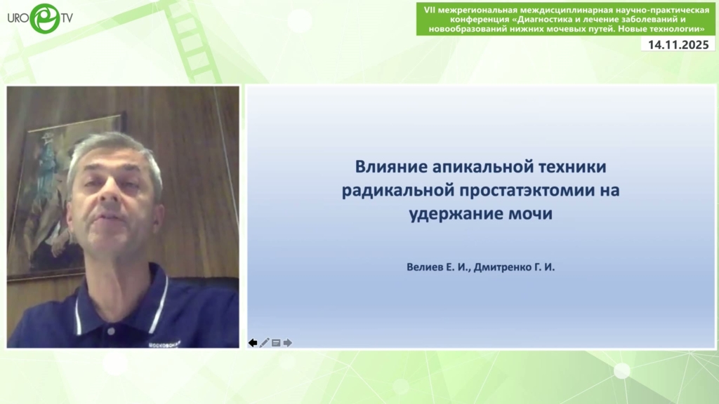 Велиев Е.И. - Влияние апикальной техники радикальной простатэктомии на удержание мочи